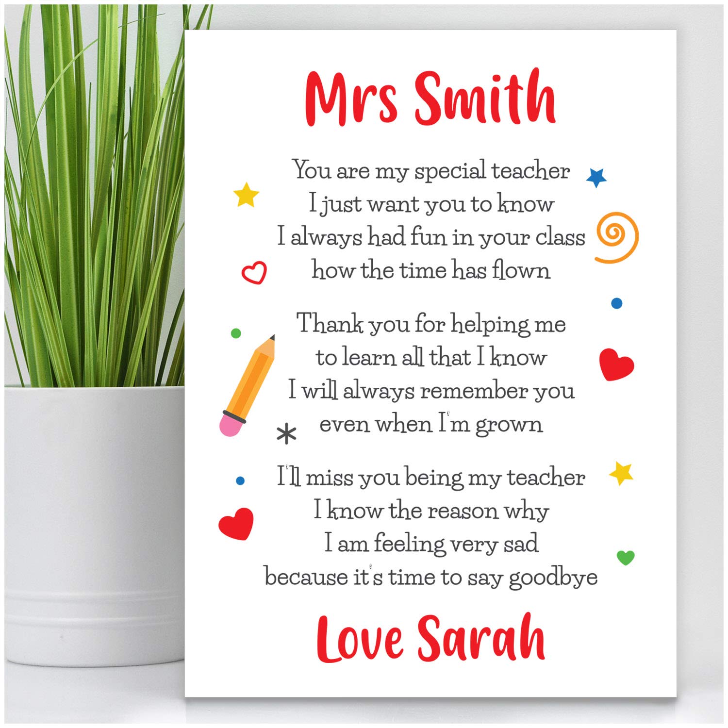 Personalised Gifts For Teachers Teacher Thank You Poem End Of School Term Gifts For Teacher Teaching Assistant Nursery Pre School Teacher Appreciation Gifts Christmas Gifts For Teacher Amazon Co Uk from m.media-amazon.com Thank you classroom assistant poems. We did not find results for: Check spelling or type a new query. Maybe you would like to learn more about one of these?